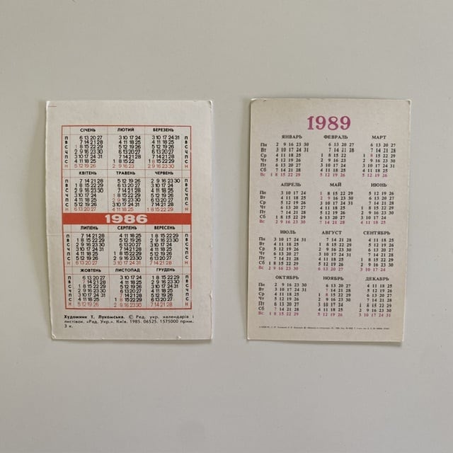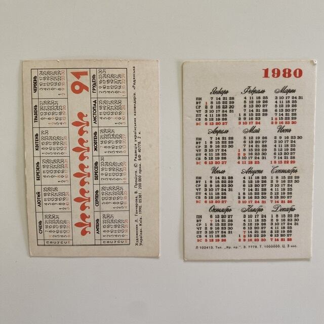 ソ連時代のポケットカレンダー12枚セットです。