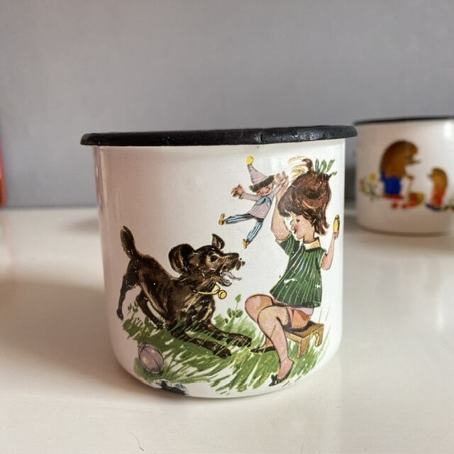 ソ連時代の女の子とワンちゃんホーローカップです。