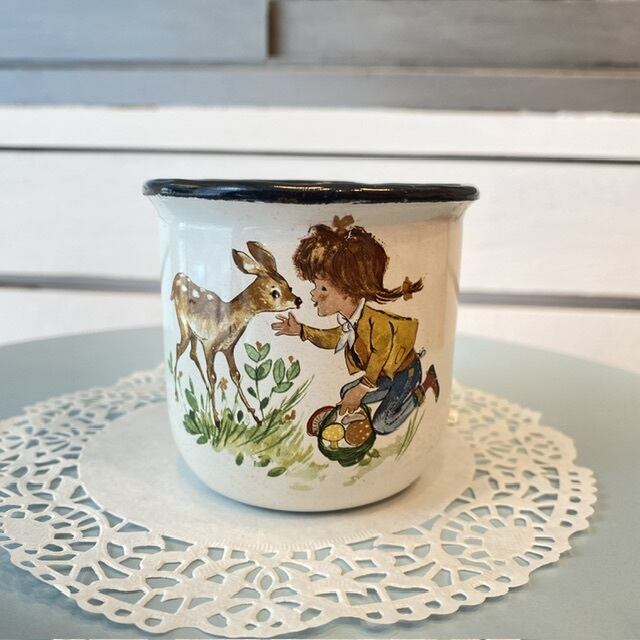 ソ連時代の可愛い少女とバンビちゃんホーローカップ
