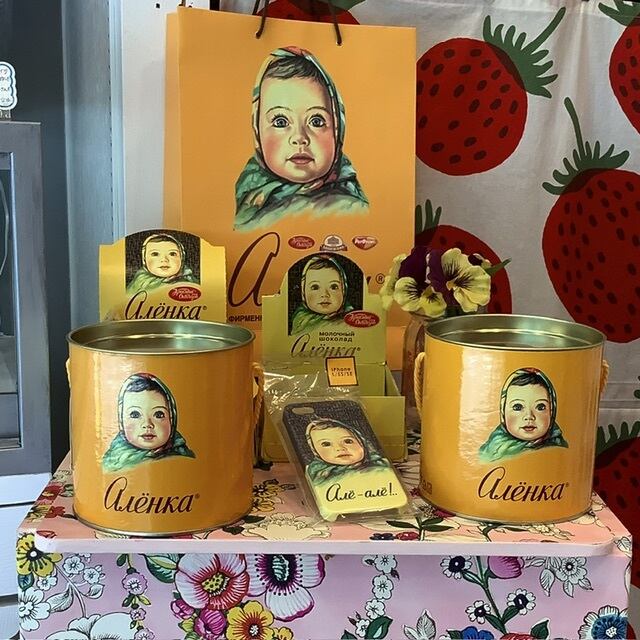 ロシアを代表するチョコレートメーカーのアリョンカちゃんチョコレートはとても有名で、とても可愛い専門店やスーパーにもいろんなアリョンカちゃんチョコが売ってます。